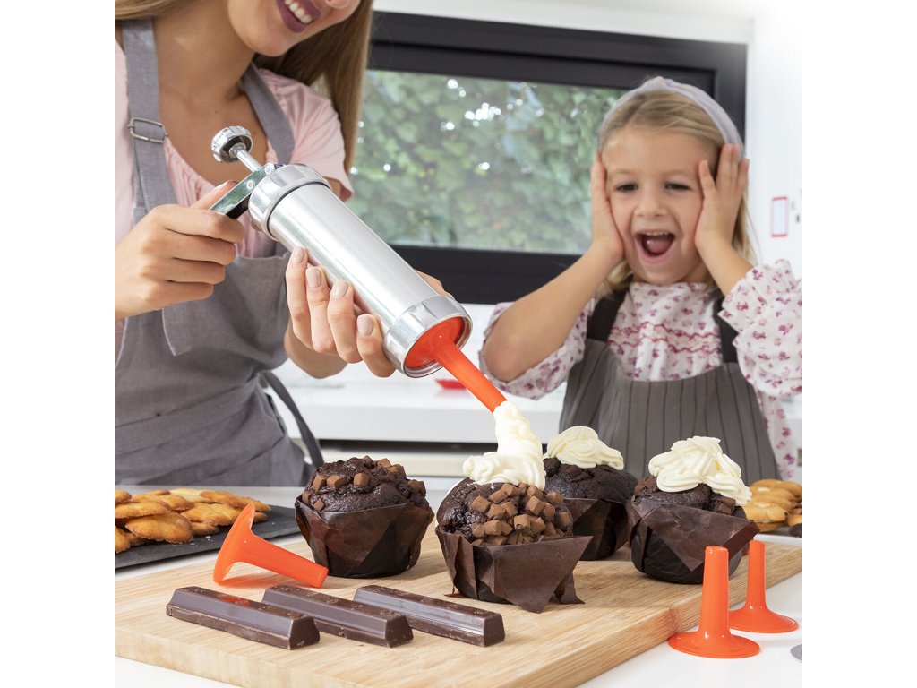 - Pištoľ na sušienky a vrecko na zdobenie: Vhodná na sušienkové cesto, krém, čokoládu atď.
