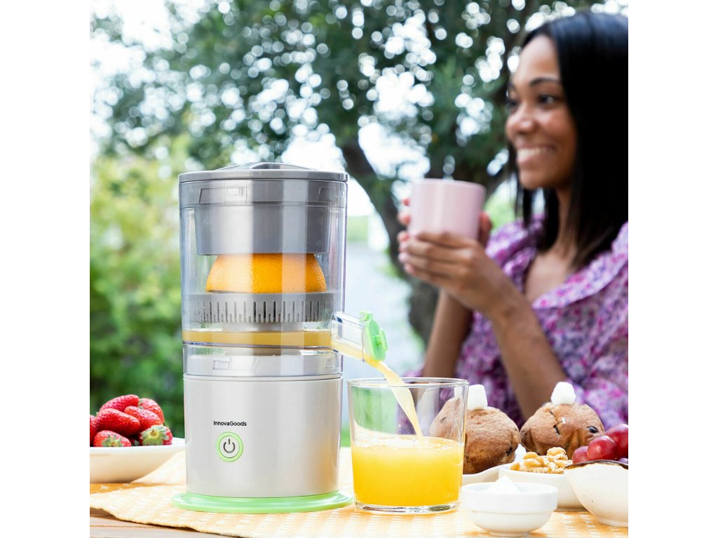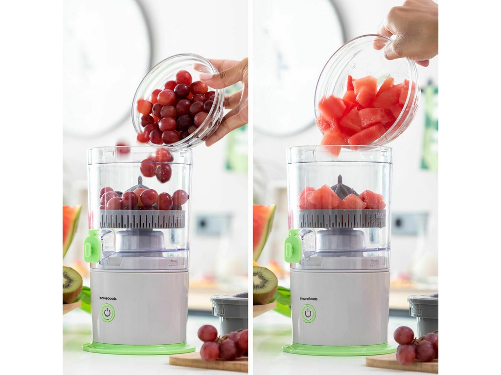 Inovatívny prenosný odšťavovač, ktorý možno použiť kedykoľvek a kdekoľvek. Ideálny pre vonkajšie použitie: domov, kemping, karavan atď. Veľmi pohodlný, ľahko sa používa a čistí.