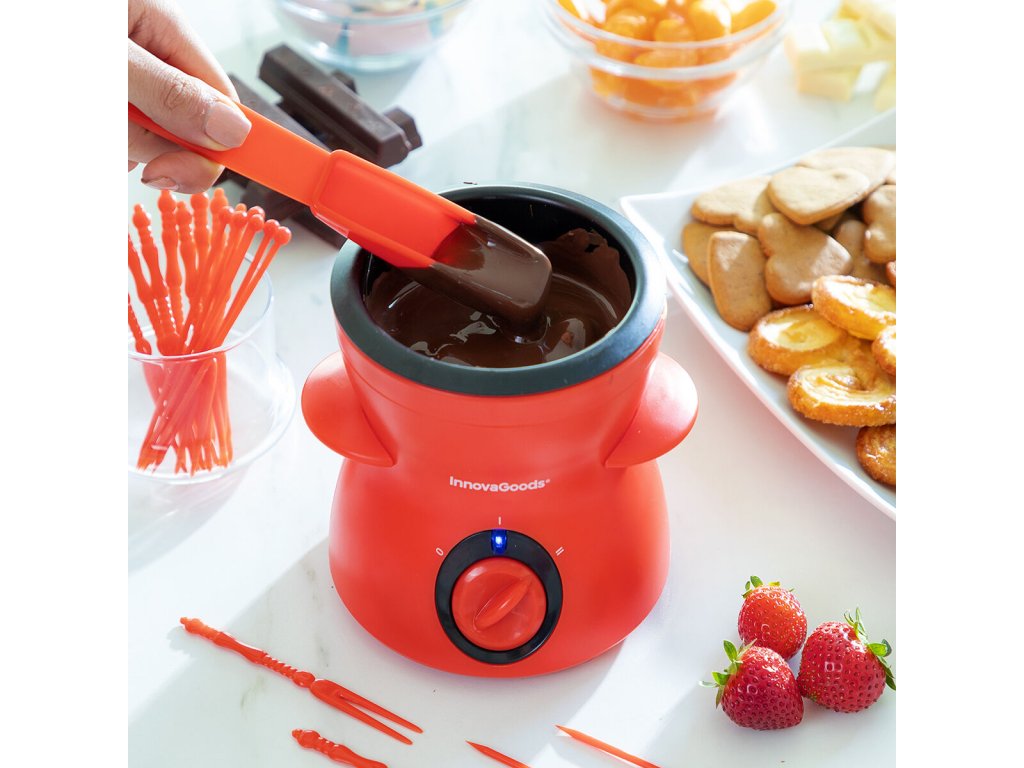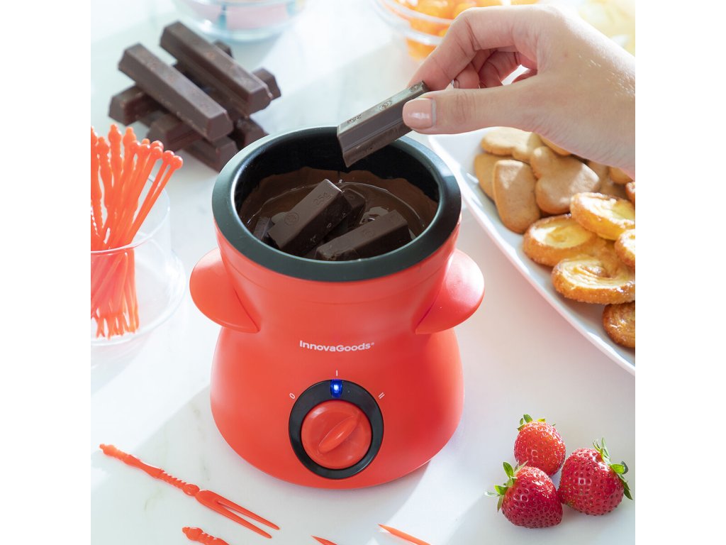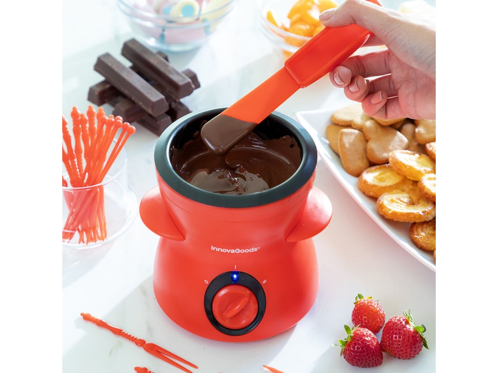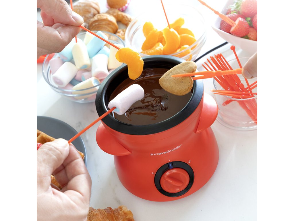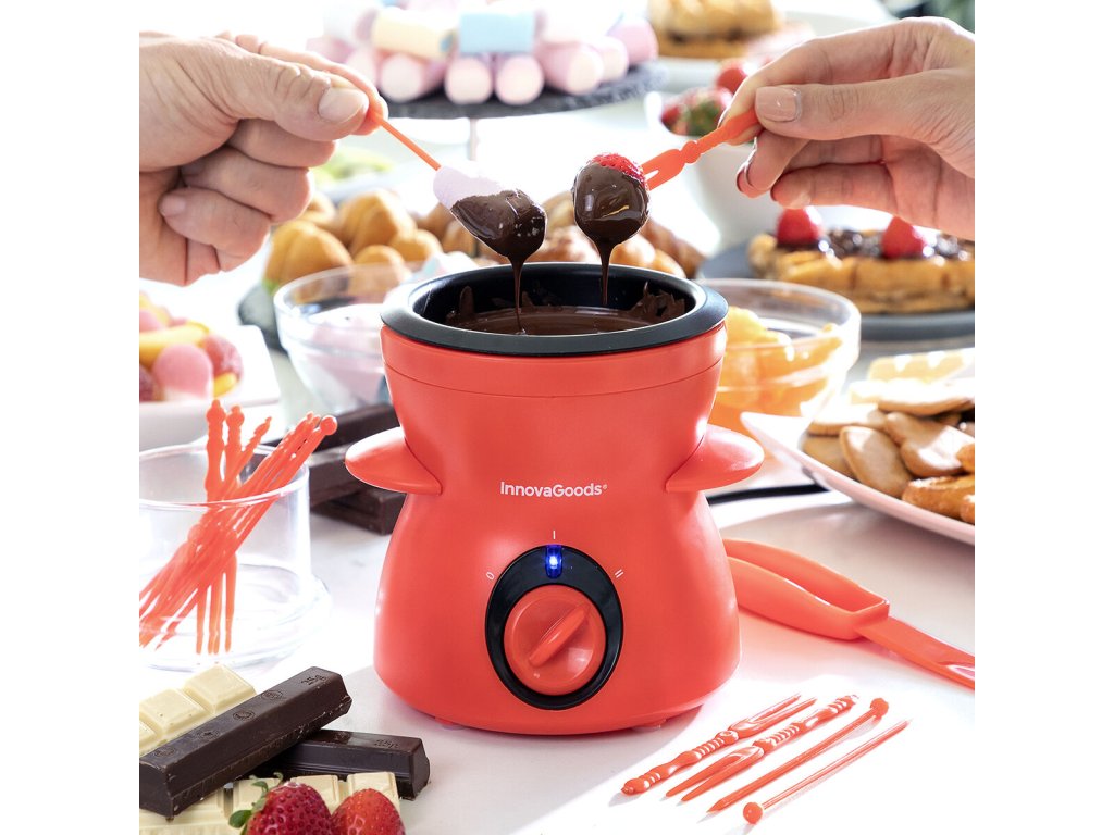 Vďaka kompaktnému dizajnu a jednoduchej obsluhe je ideálny na domáce použitie aj na párty. Sada obsahuje všetko potrebné – ohrievaciu misku na čokoládu, vidličky na namáčanie a stabilný podstavec.