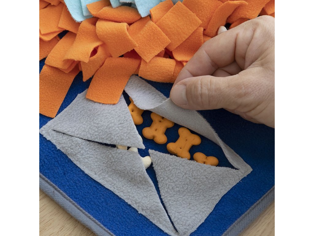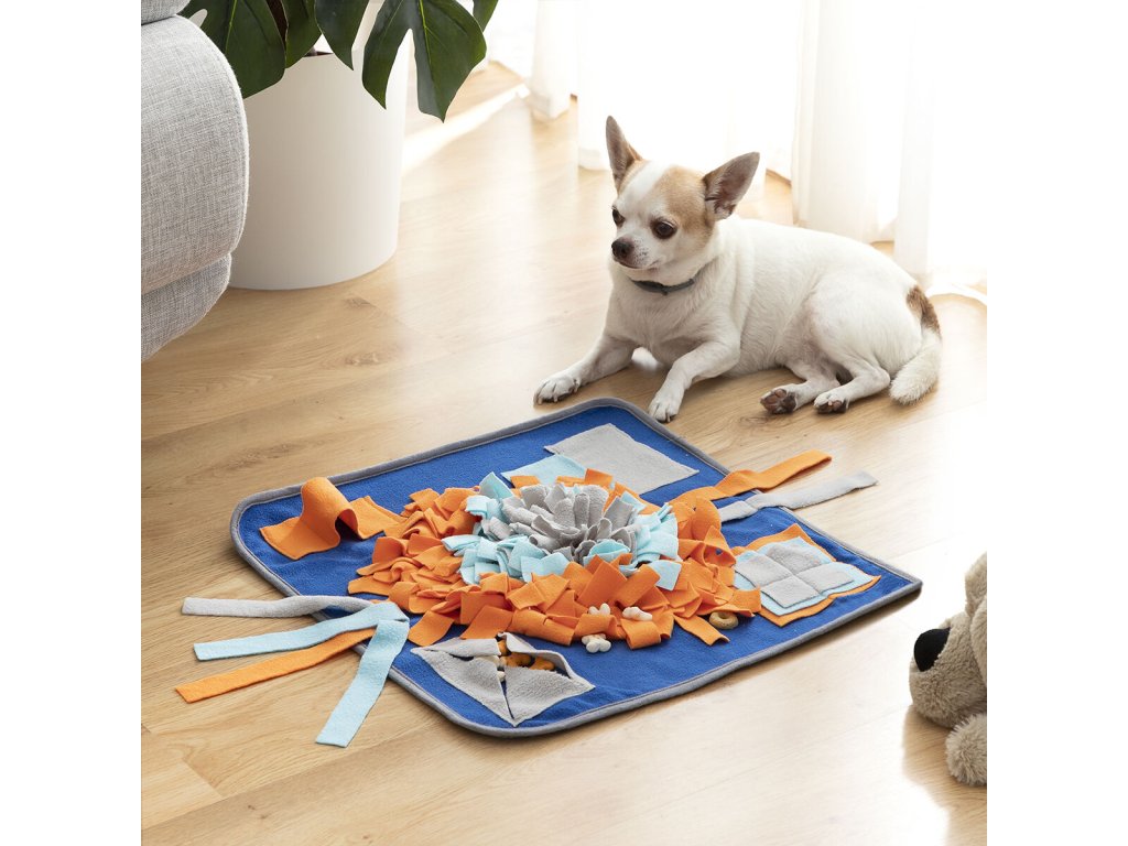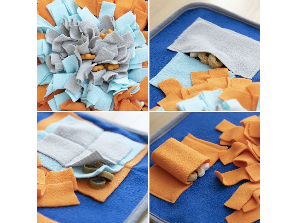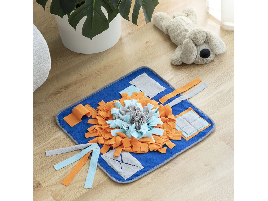 Táto podložka na hranie a maškrty pre domácichmiláčikov bola navrhnutá v jasných farbách, ktoré pomáhajú stimulovaťzmysly zvieraťa a lovecký inštinkt, vďaka čomu je čas kŕmenia príjemnejší azábavnejší. Zviera bude mať radosť z hľadania potravy, kým sa bude hrať, abyuspokojila jeho zvedavosť. Na nájdeniepotravy a získanie odmeny použijú čuch a labky.