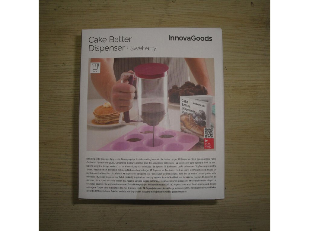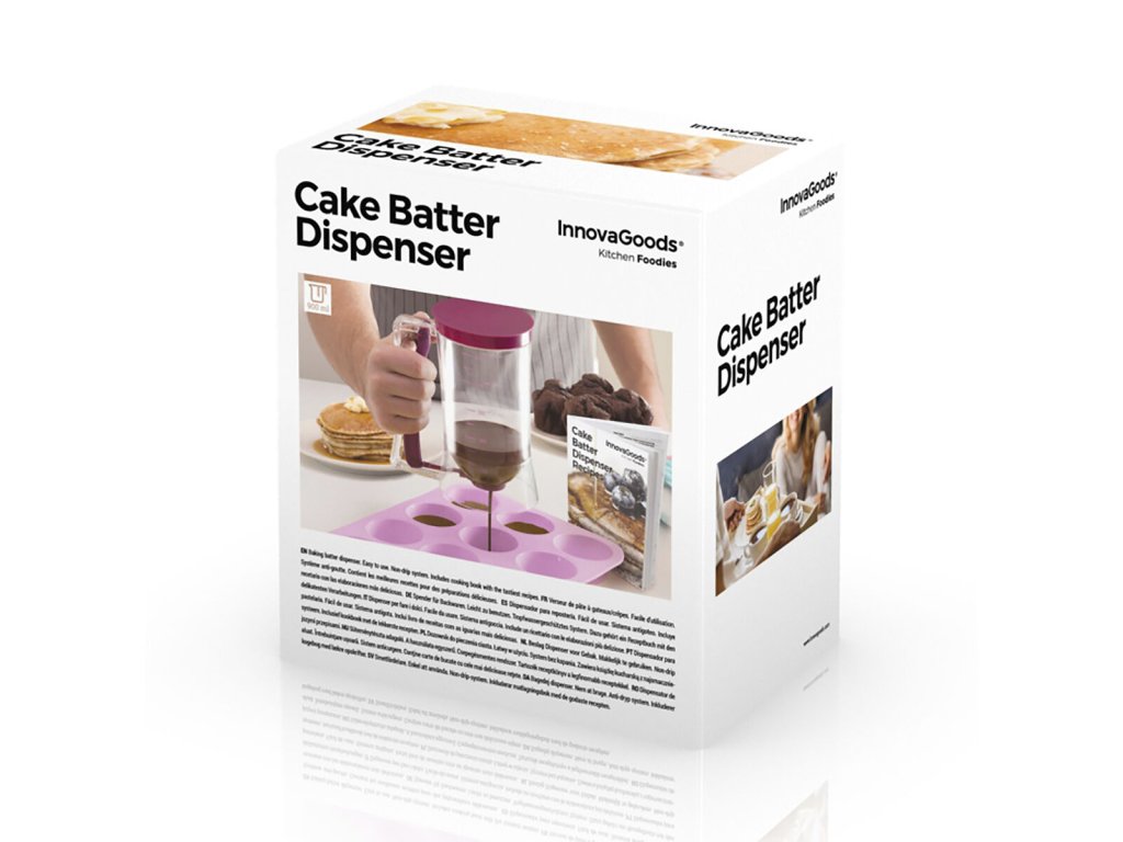 InnovaGoods je tu, aby vám pomohla variť ľahšie a zábavným spôsobom a preto vám ponúka novinky pre vašu kuchyňu, ako sú Dávkovač na Liate Cesta s Receptami InnovaGoods ! Objavte širokú škálu vysoko kvalitných výrobkov, ktoré vynikajú svojou funkčnosťou, efektivitou a inovačným dizajnom!Skvelý vynález, ktorý uľahčí prípravu rôznych dezertov (muffiny, tortičky, košíčky, madlenky, rakvičky atď.). Vďaka originálnemu dizajnu rozlievate cesto v presných dávkach jednoduchým ľahkým stlačením rukoväte. Jednoduchá a čistá metóda, ktorá uľahčí život kreatívnym cukrárkam! Súčasťou sú navyše recepty na lahodné dezerty.
