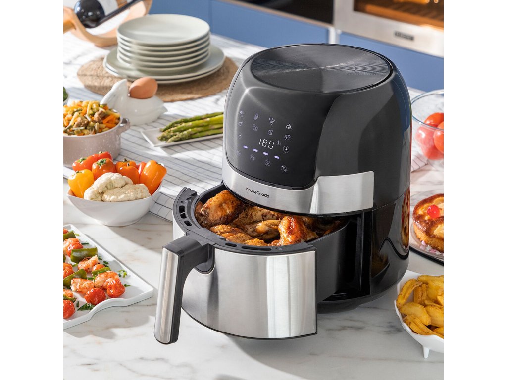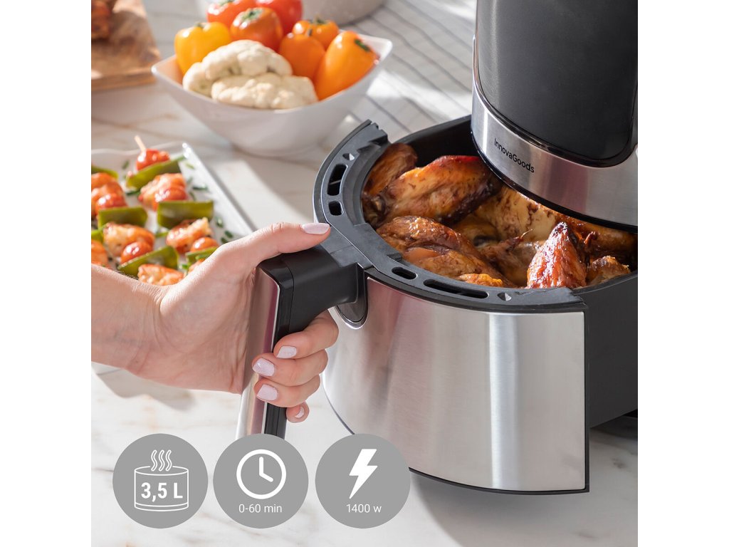 InnovaGoods je tu, aby vám pomohla variť ľahšie a zábavným spôsobom a preto vám ponúka novinky pre vašu kuchyňu, ako sú Fritéza s nízkou spotrebou Oleja InnovaGoods Fryinn 3500 Čierna Nerezová oceľ 1400 W 3,5 L ! Objavte širokú škálu vysoko kvalitných výrobkov, ktoré vynikajú svojou funkčnosťou, efektivitou a inovačným dizajnom!Naše teplovzdušné fritézy ponúkajú nový zdravý spôsob prípravy chutných receptov. So svojimi výkonnými ventilátormi varí 360º rýchlo prúdiaci horúci vzduch efektívnejšie ako bežné spotrebiče.