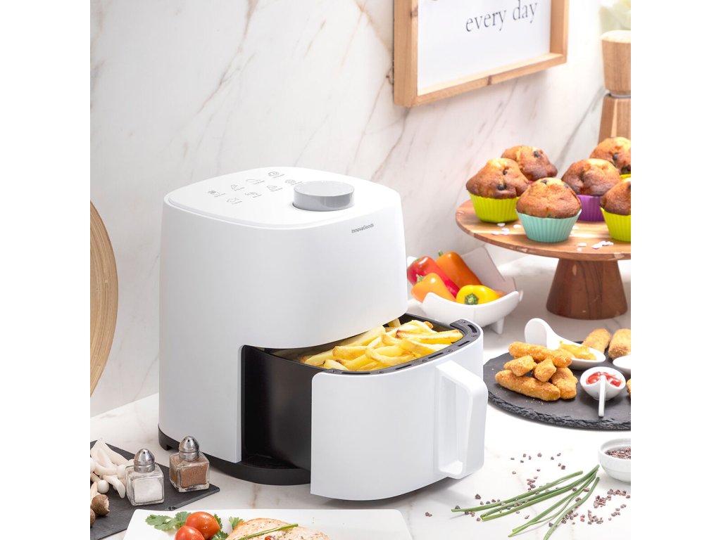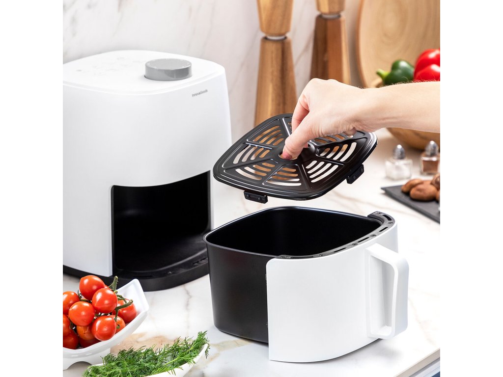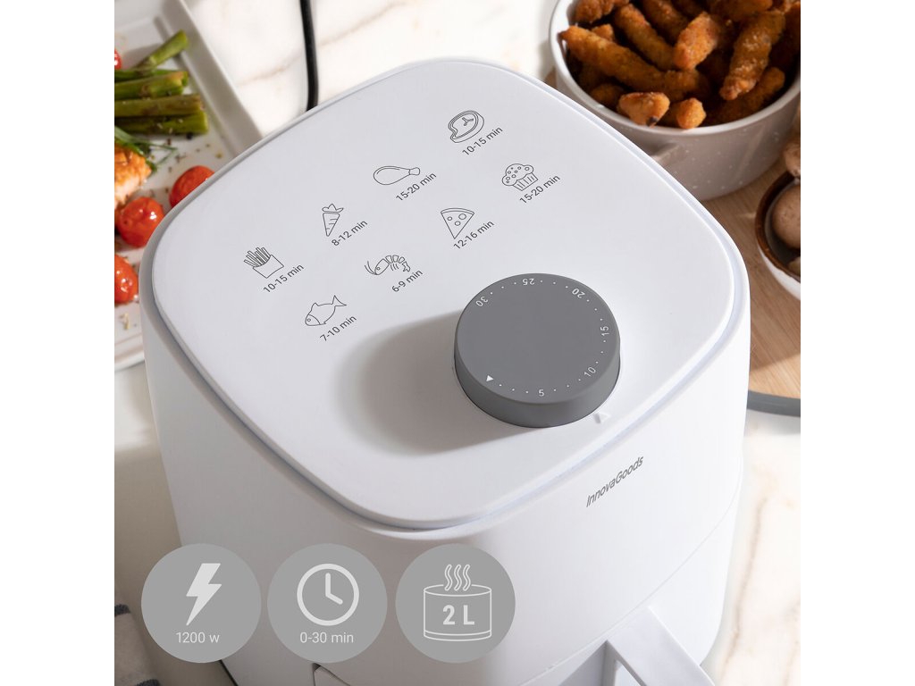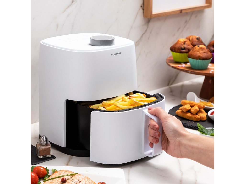 InnovaGoods Fryinn Lite 2000 je moderná fritéza navrhnutá pre zdravšie varenie s minimálnym použitím oleja. Vďaka technológii rýchlej cirkulácie horúceho vzduchu pri 360º pripravíte jedlá rovnomerne a s chrumkavou kôrkou, pričom zachováte ich nutričné hodnoty. S výkonom 1200 W a kapacitou 2 litre je ideálna pre prípravu rôznych pokrmov pre celú rodinu.