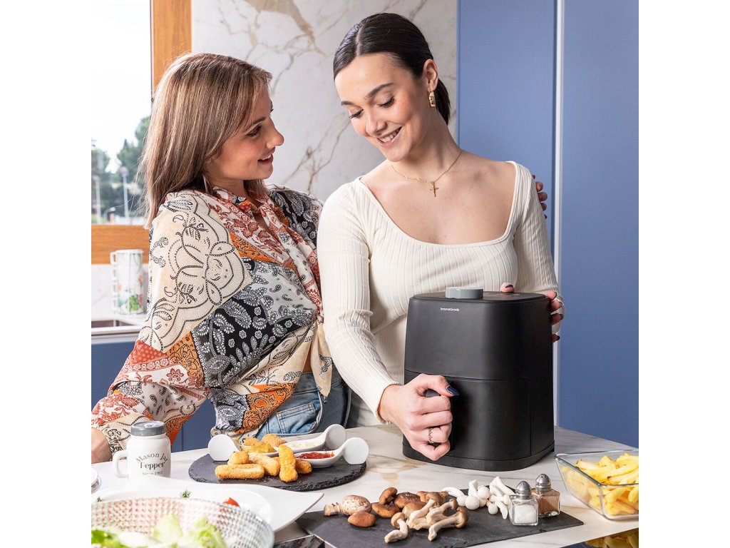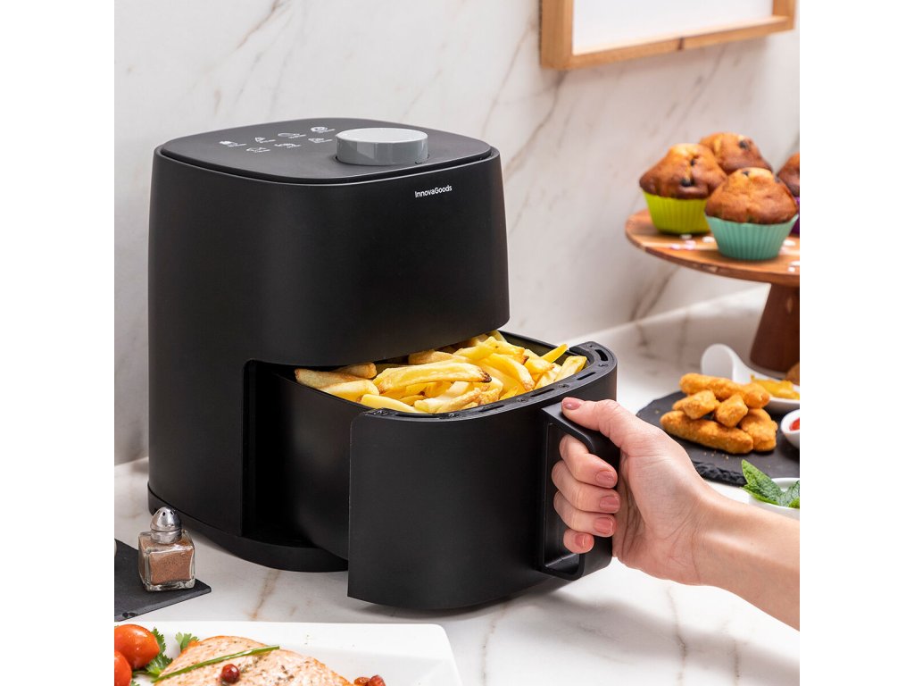 Fritéza InnovaGoods Fryinn Lite 2000 je navrhnutá pre tých, ktorí hľadajú zdravšie alternatívy pri varení. Využíva technológiu cirkulácie horúceho vzduchu pri 360º, čo umožňuje rovnomerné a rýchle varenie s minimálnym množstvom oleja alebo úplne bez neho. S kapacitou 2 litre je ideálna pre menšie domácnosti alebo jednotlivcov.