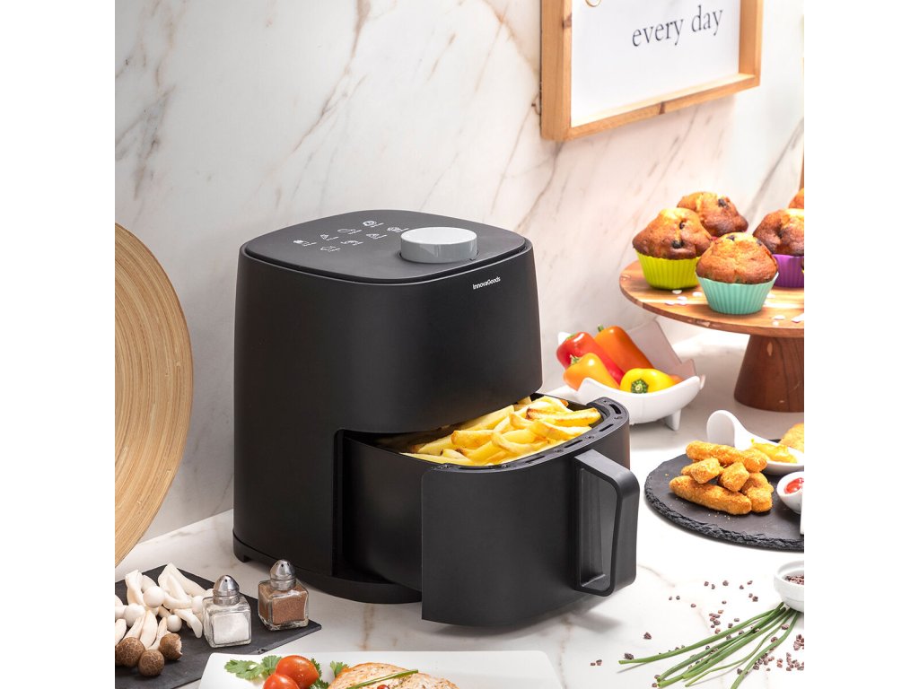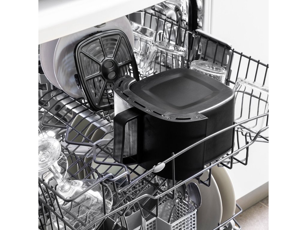 Fritéza je vybavená nepriľnavým odnímateľným košom, ktorý je vhodný do umývačky riadu, čo uľahčuje čistenie. Jednoduché ovládanie pomocou otočného gombíka umožňuje nastaviť požadovaný čas prípravy. Súčasťou balenia je aj QR magnet s prístupom k online knihe receptov s viac než 100 rôznymi jedlami.