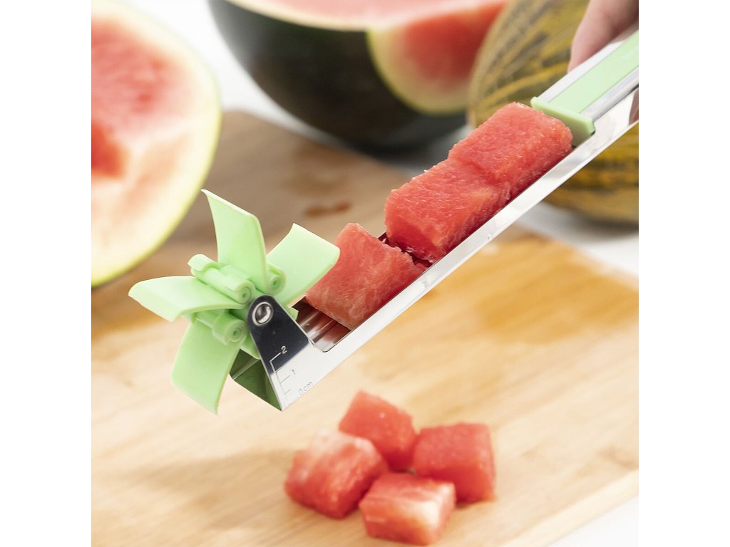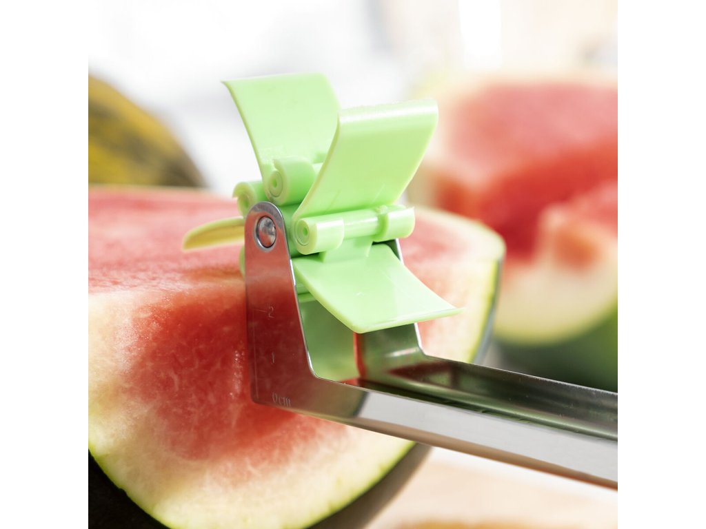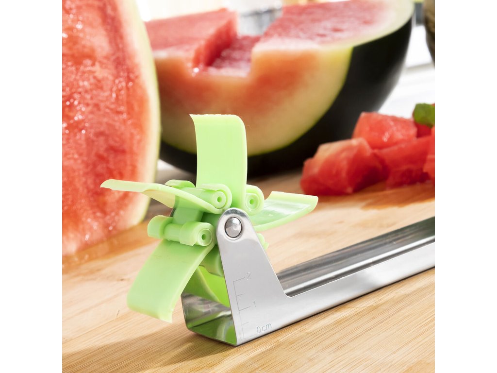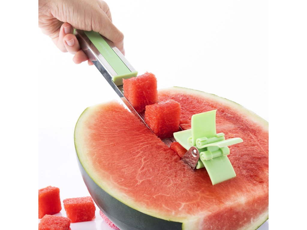 InnovaGoods je tu, aby vám pomohla variť ľahšie a zábavným spôsobom a preto vám ponúka novinky pre vašu kuchyňu, ako sú Krájač melónu na kocky Cutmil InnovaGoods ! Objavte širokú škálu vysoko kvalitných výrobkov, ktoré vynikajú svojou funkčnosťou, efektivitou a inovačným dizajnom!Originálny krájač melónu na kocky, ktorý musíte mať v najmodernejších a najpraktickejších kuchyniach, pretože vám ušetrí čas a námahu a rýchlo a jednoducho dosiahne dokonalý výsledok. Má čepele a robí rovnomerné a presné rezy v geometrickom a rovnakom tvare kocky. Jeho predĺžená rukoväť poskytuje pevné uchopenie. Na systematické získavanie kociek stačí tlačiť a posúvať krájač po povrchu otvoreného melónu. Oveľa bezpečnejší rezaný systém ako bežný nôž, ktorý zabraňuje možnému poškodeniu pri používaní. Tento ručný kuchynský riad je skvelým pomocníkom pri príprave prírodných dezertov s najlepšou prezentáciou, vďaka čomu je konzumácia ovocia príťažlivejšia pre dospelých aj deti. Ideálny na vychutnanie si vynikajúcich kociek melónu samotných alebo spolu s iným ovocím v kreatívnych špízoch. Okrem toho je krájač kompaktný, robustný a ľahký, takže ho možno ľahko skladovať. Hoci sa používa najmä na krájanie dyne, dá sa použiť aj na krájanie melónu. Nie je vhodný do umývačky riadu, preto ho odporúčame umývať ručne. Obsahuje návod na použitie s obrázkami.