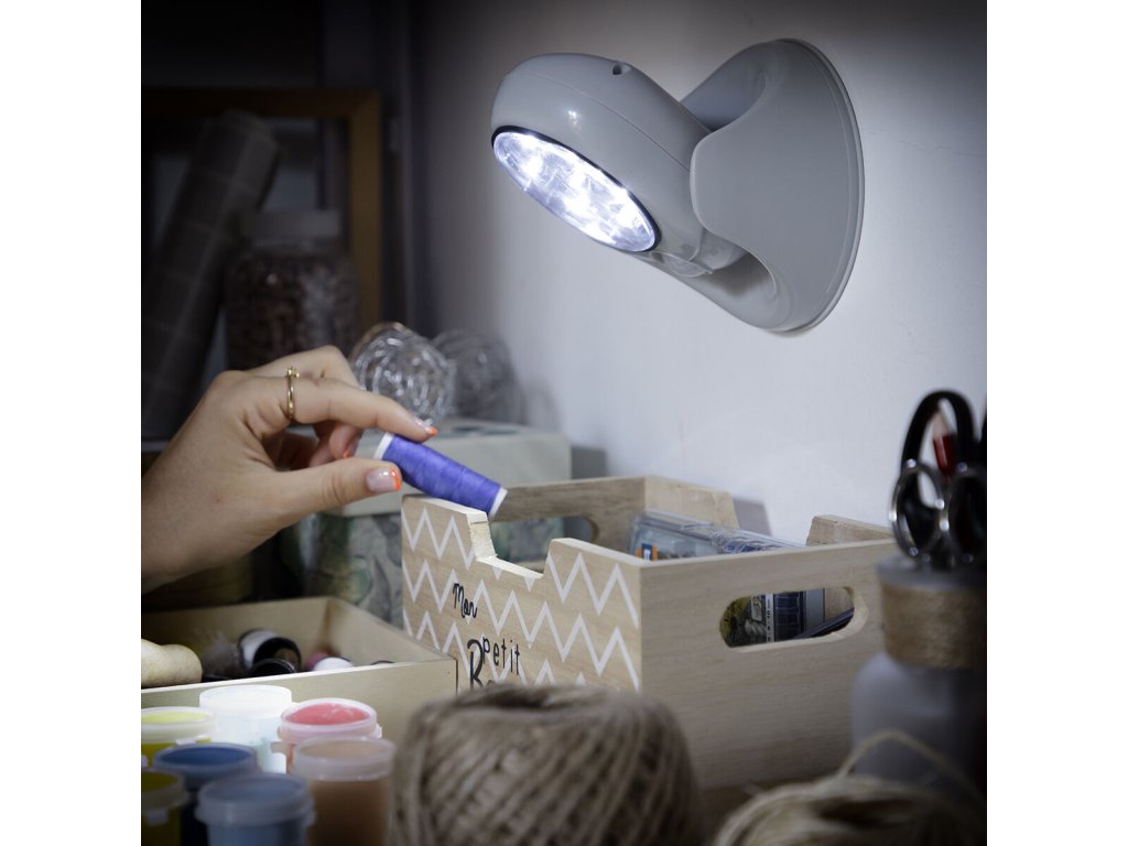 Toto všestranné LEDsvetlo sa zapne, keď zaznamená pohyb v tme vďaka infračervenému senzoru. Mánastaviteľný uhol a 360º otáčanie, takže ho môžete nastaviť do požadovanejpolohy. Je tiež napájané z batérie a možno ho jednoducho nainštalovať pomocou nalepeniana požadovaný povrch alebo pomocou priloženého montážneho príslušenstva.