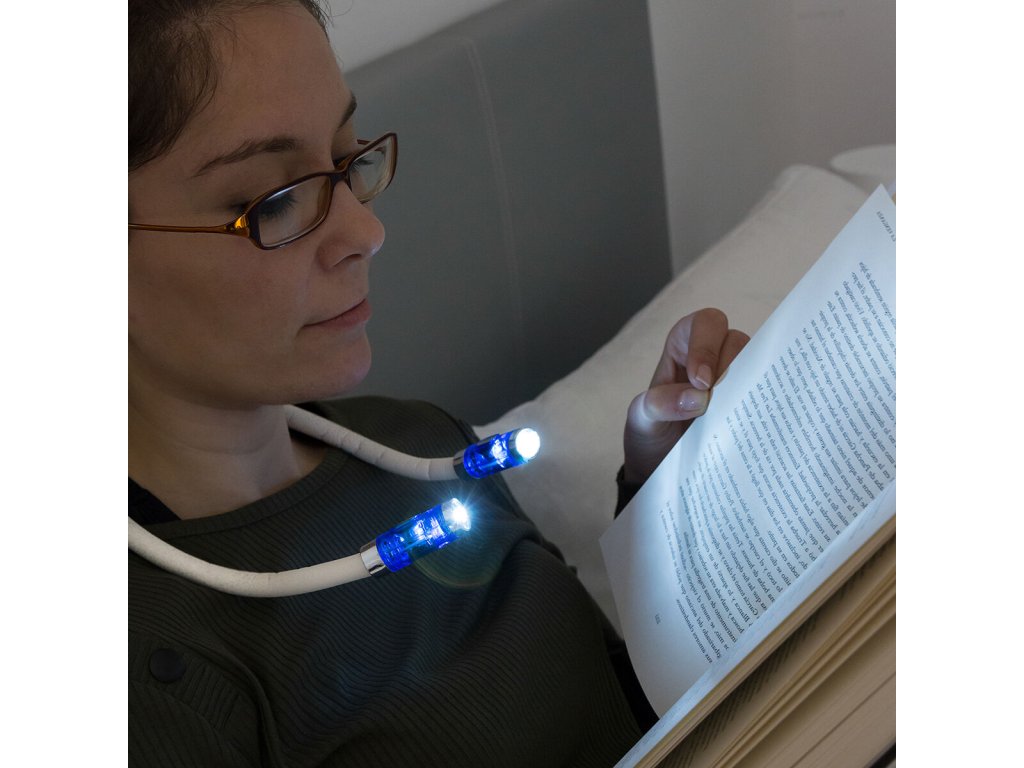 LED lampička na čítanie na krk Nereled od InnovaGoods je praktický a pohodlný pomocník pre všetkých milovníkov kníh. Vďaka ergonomickému dizajnu ju jednoducho nasadíte okolo krku, čím získate voľné ruky na pohodlné čítanie, ručné práce či iné aktivity. Každé rameno lampičky je flexibilné a umožňuje nastaviť smer osvetlenia presne podľa vašich potrieb.
