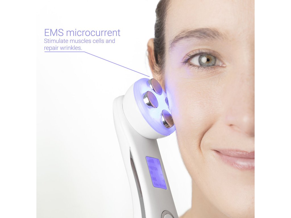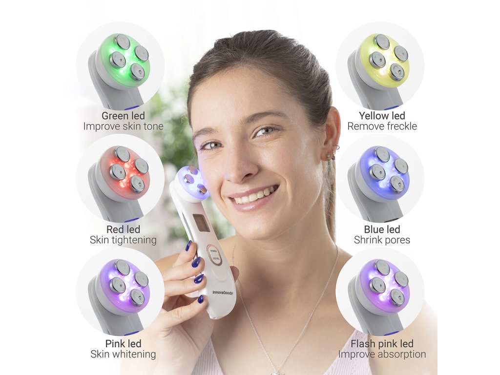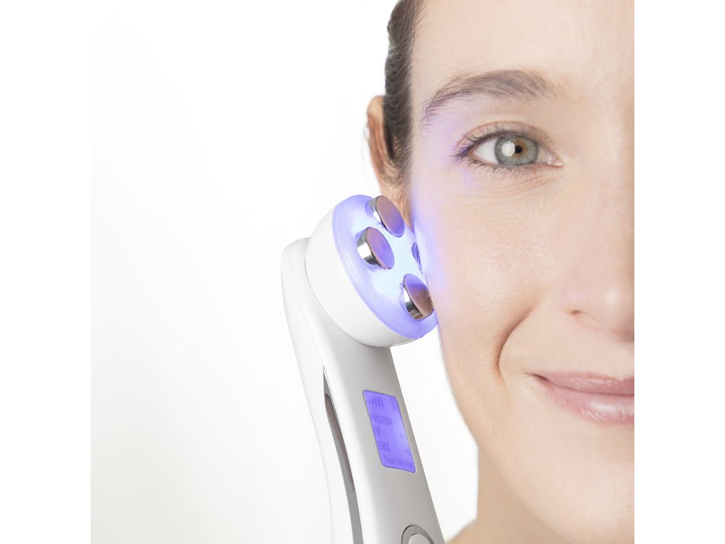 Masážny prístroj na tvár Wace od InnovaGoods je navrhnutý na komplexnú starostlivosť o pleť prostredníctvom pokročilej trojkombinácie terapií: rádiofrekvencie (RF), fototerapie a elektrostimulácie (EMS). Počas fototerapeutického ošetrenia si môžete vybrať zo 6 režimov LED svetla s rôznymi funkciami a účinkami na pokožku. Rádiofrekvenčné a elektrostimulačné ošetrenia (RF/EMS) s 5 úrovňami intenzity pracujú spolu so zvolenou svetelnou terapiou, aby sa dostali do najhlbších vrstiev pokožky. Na dosiahnutie optimálnych výsledkov by mala byť pokožka predtým dôkladne vyčistená a na posilnenie účinkov by sa mal použiť obvyklý krém/sérum. Odporúča sa používať maximálne 10 minút denne.