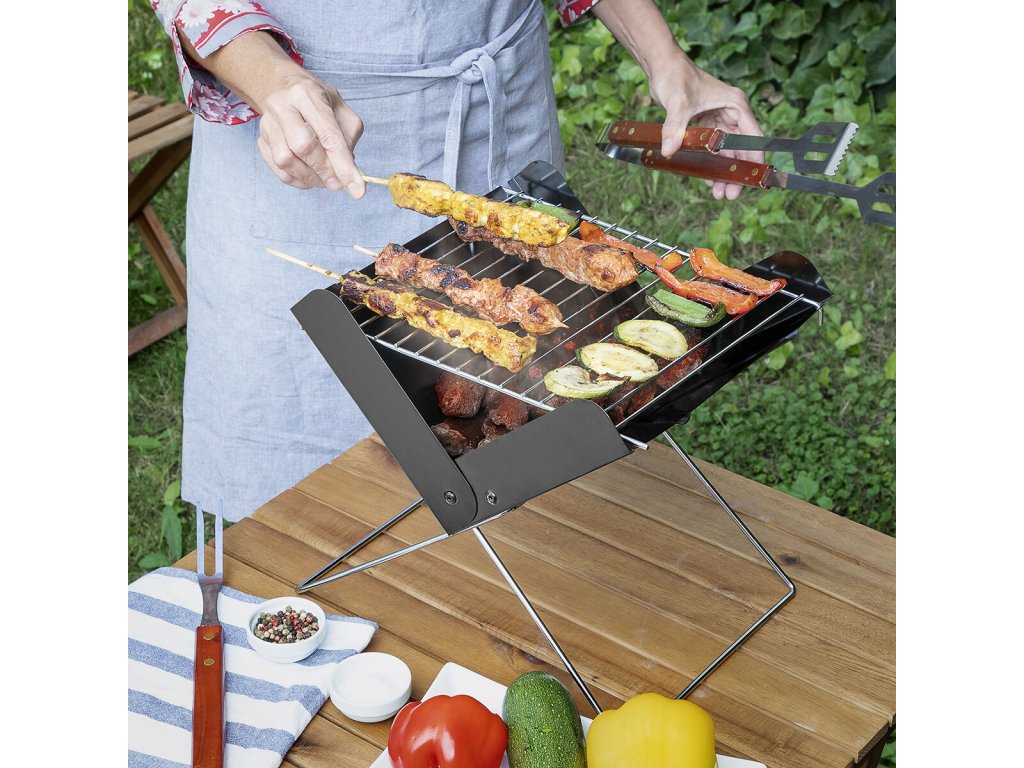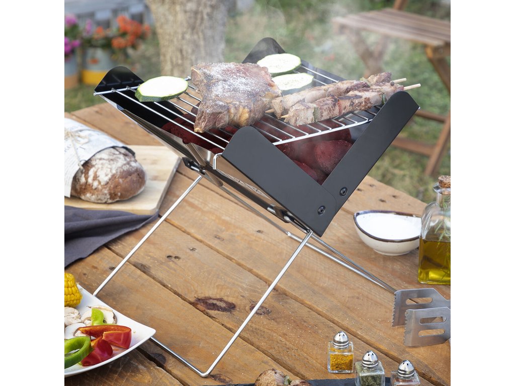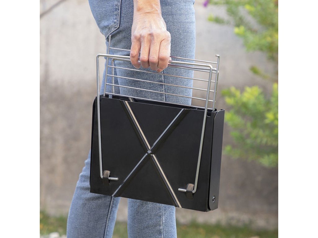 InnovaGoods vám ponúka najnovšie výrobky pre vašu domácnosť ako sú Mini skladací prenosný gril na drevené uhlie Foldecue InnovaGoods ! Objavte širokú škálu vysoko kvalitných výrobkov, ktoré vynikajú svojou funkčnosťou, efektivitou a inovačným dizajnom: osvetlenie, usporiadanie, dekorácia, klimatizácia, záhrada, domáce zvieratá, upratovanie atď.Mini stolný gril na drevené uhlie s moderným skladacím a prenosným dizajnom, vďaka ktorému je veľmi praktický a dá sa vziať kamkoľvek. Jeho otvorená konštrukcia a odnímateľný gril na potraviny umožňujú ľahké pridanie dreveného uhlia kedykoľvek. Drevené uhlie je umiestnené na spodnom podnose s vetracími otvormi, ktoré napomáhajú jeho horeniu. Medzi grilom a dreveným uhlím je dostatočná vzdialenosť, aby sa jedlo nepripálilo. Tento mini gril zo železa a ocele je robustný, ľahký a veľmi ľahko sa prepravuje a skladuje, pretože v zloženom stave zaberá veľmi málo miesta. Dizajn stojana na časopisy navyše znamená, že sa dá ľahko zložiť a rozložiť. Pri používaní ho položte na zem alebo na stôl (na rovný, stabilný a žiaruvzdorný povrch). Ideálny na vychutnanie si vynikajúceho grilovania s priateľmi (2 hostia) a jednoduché použitie a čistenie. Na zapálenie použite kocky podpaľovača, gél na podpaľovanie alebo iné podpaľovače vhodné na grilovanie (nie sú súčasťou balenia). Aby sa však gril uchoval dlhšie, odporúča sa zapáliť ho pomocou zariadenia na zapálenie dreveného uhlia (nie je súčasťou balenia). Pamätajte, že nie je vhodný na drevo ani iné palivá. Drevené uhlie nie je v balení.