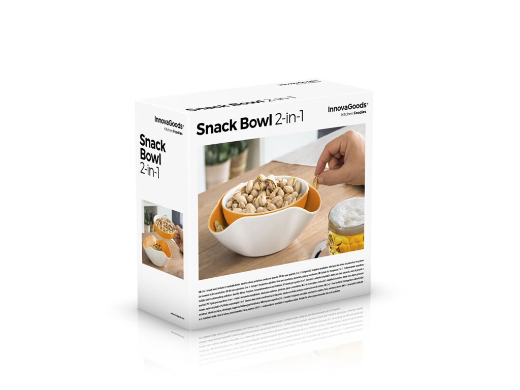 InnovaGoods Misky na oriešky 2 v 1 sú navrhnuté pre pohodlné servírovanie vašich obľúbených pochutín, ako sú olivy, chrumky či pistácie, pričom poskytujú praktický priestor na odkladanie škrupín, kôstok alebo iných zvyškov. Sú vyrobené z kvalitného PVC materiálu bez obsahu BPA, čo zaručuje bezpečnosť pri kontakte s potravinami. Súprava obsahuje dve misky rôznych tvarov a veľkostí, ktoré je možné stohovať na seba pre úsporu miesta a jednoduché skladovanie. Menšia miska má priemer približne 16 cm a výšku 4,5 cm, zatiaľ čo väčšia miska má rozmery približne 20 x 8 x 20 cm. Ich moderný a funkčný dizajn sa hodí do každej domácnosti, čím zvyšuje komfort pri podávaní občerstvenia počas stretnutí s rodinou či priateľmi.