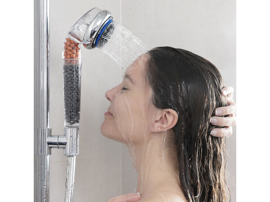 - Priaznivé účinky: Filtruje chlór a nečistoty, zlepšuje zdravie pokožky