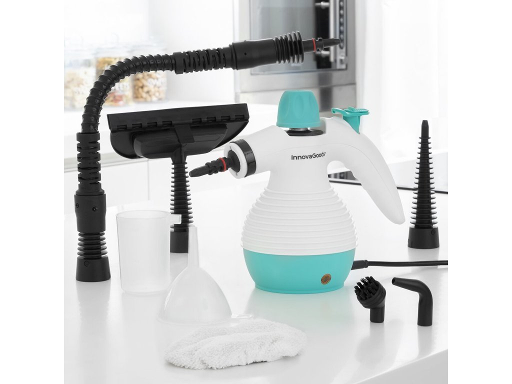 Parný čistič Steany InnovaGoods je všestranný pomocník na efektívne čistenie a dezinfekciu domácnosti či vozidla. S výkonom 1000 W a tlakom pary 3 bary účinne odstraňuje mastnotu, škvrny a plesne z rôznych povrchov, ako sú dlaždice, podlahy, umývadlá, dosky, dvere, okná, koberce, matrace či pohovky. Čistenie horúcou parou eliminuje 99,99 % bežných baktérií bez potreby použitia chemických prostriedkov, čo je šetrné k životnému prostrediu aj vášmu zdraviu.