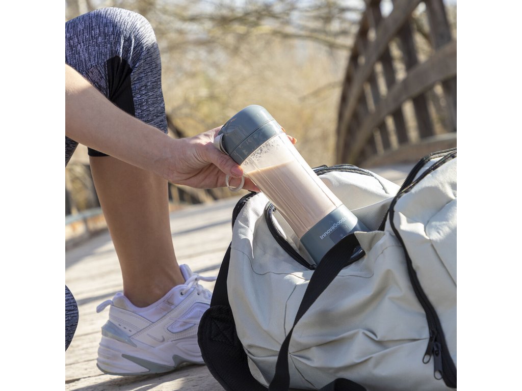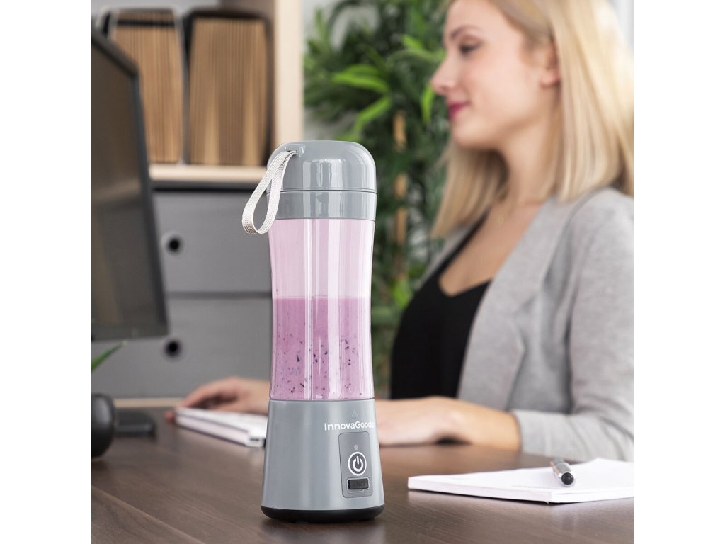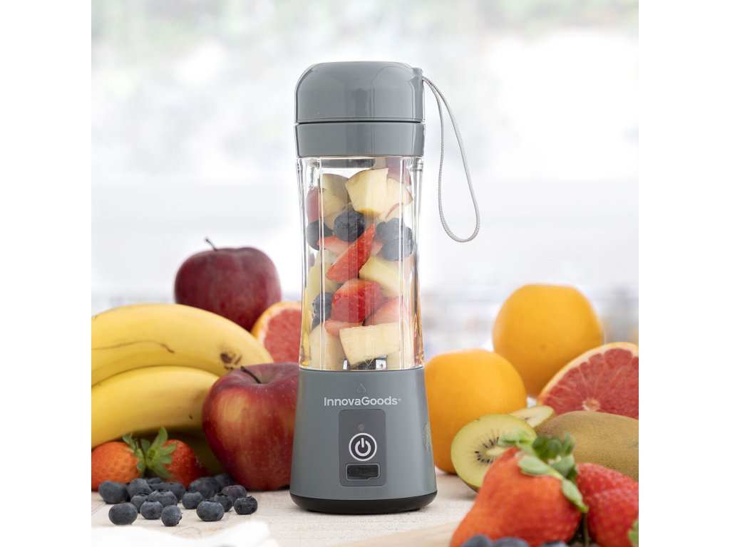 InnovaGoods predstavuje Nabíjateľný prenosný mixér s pohárom Shakuit, navrhnutý pre tých, ktorí si chcú vychutnať čerstvé nápoje kedykoľvek a kdekoľvek. Tento moderný a funkčný mixér s objemom 380 ml je vybavený šiestimi oceľovými sekacími čepeľami, ktoré dosahujú rýchlosť až 17 000 otáčok za minútu, čo umožňuje rýchlu a efektívnu prípravu vašich obľúbených nápojov.