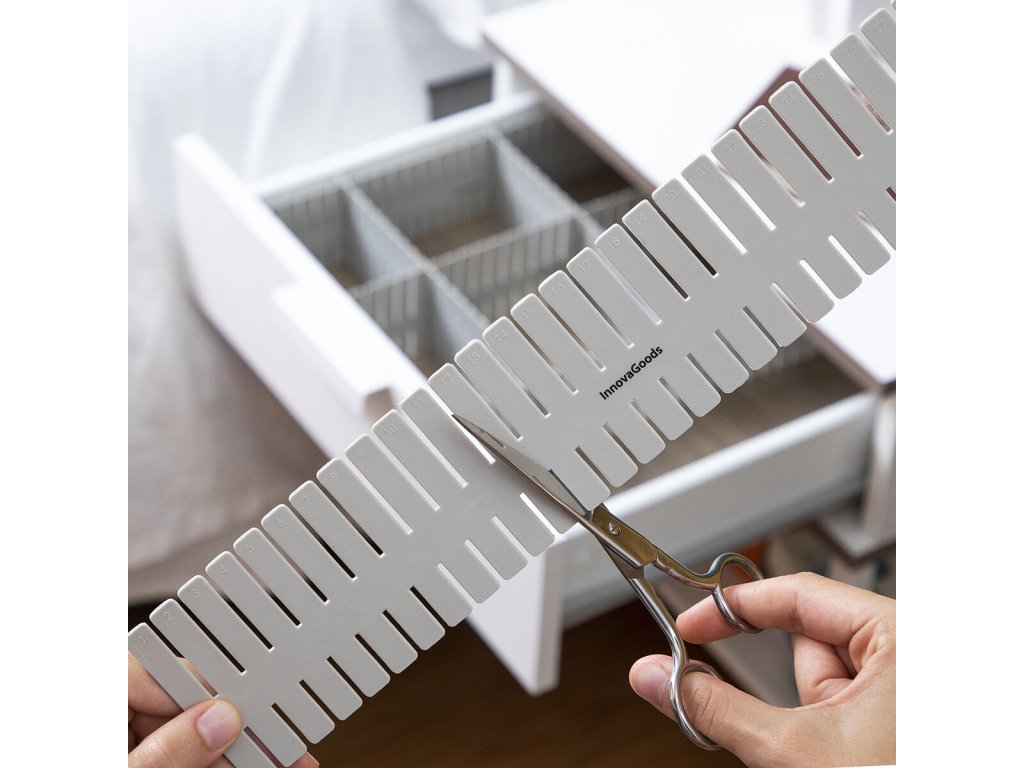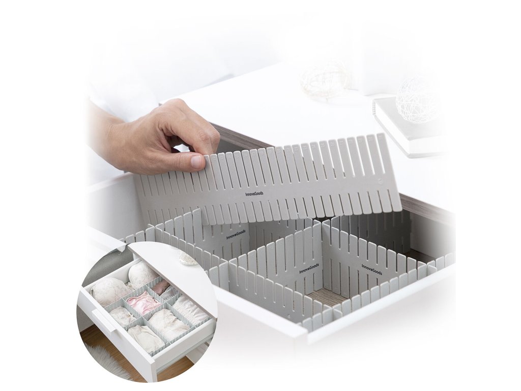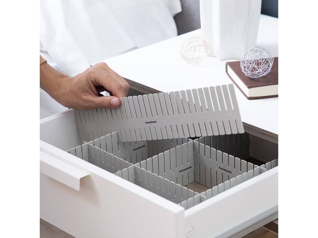 InnovaGoods Nastaviteľný organizér zásuviek Condor je praktické riešenie na udržanie poriadku vo vašich zásuvkách. Tento organizér obsahuje 16 kusov, ktoré si môžete ľubovoľne kombinovať a prispôsobiť podľa veľkosti a obsahu zásuviek. Vďaka jednoduchému systému skladania a spájania si vytvoríte ideálne priehradky na oblečenie, doplnky, kancelárske potreby, kozmetiku či náradie.