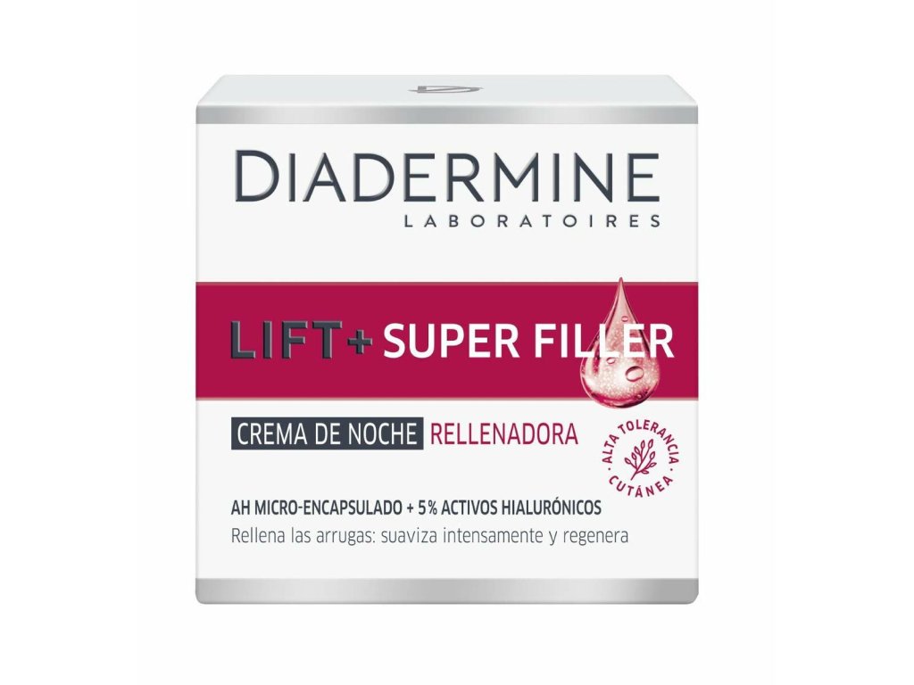 Diadermine Lift Super Filler je pokročilý nočný krém vyvinutý pre intenzívnu regeneráciu pleti počas noci. Obsahuje vysoko koncentrovanú kyselinu hyalurónovú v dvoch formách – makromolekulárna hydratuje povrch pleti a mikromolekulárna preniká hlboko do pokožky, kde pomáha redukovať vrásky zvnútra.