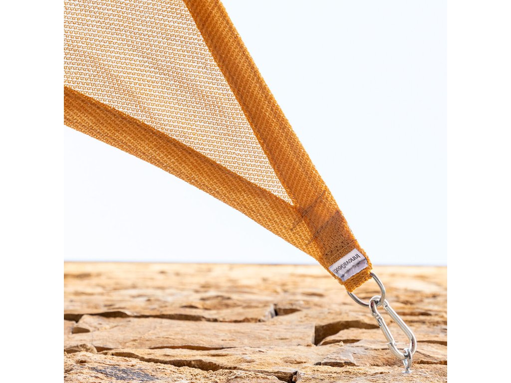 - Obsahuje lano a 4 karabíny: táto konkávna plachtová markíza obsahuje niekoľko doplnkov na jej umiestnenie: 4 železné karabíny a silné nylonové lano na jej zavesenie. Jej zosilnené rohy majú integrované kovové krúžky na pripevnenie karabín.