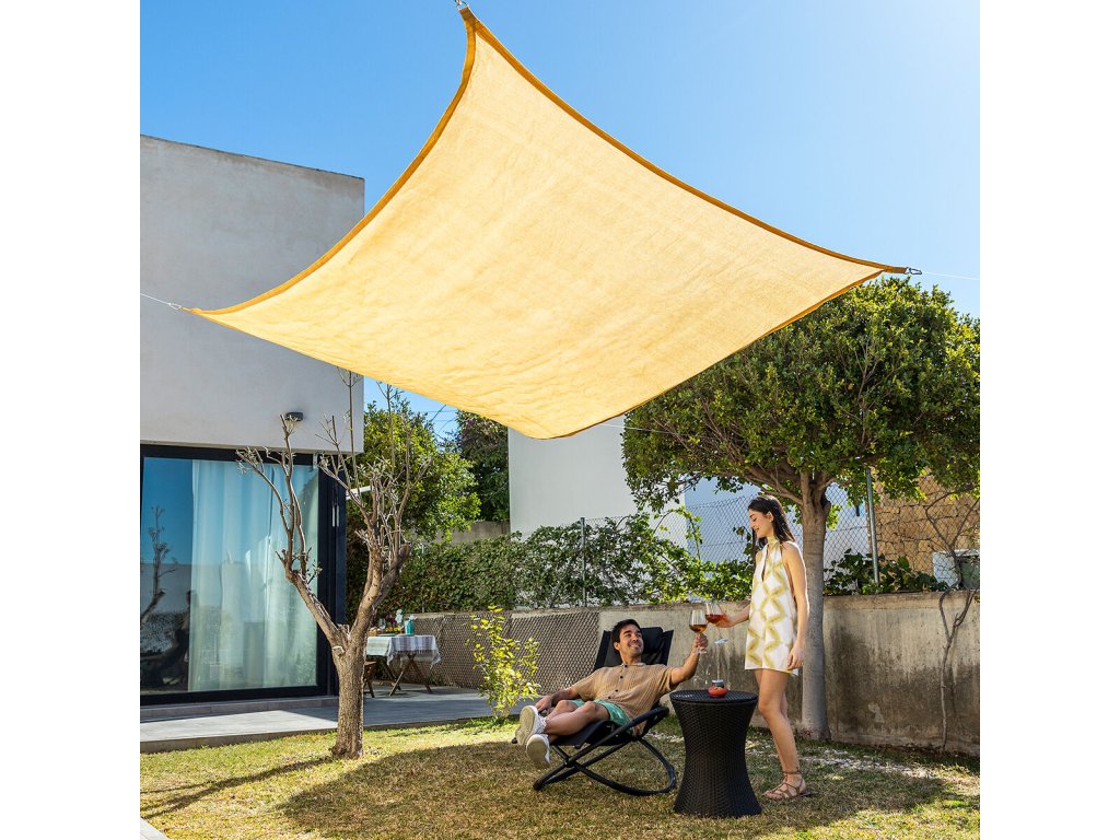 - Obdĺžnikový dizajn, 2 x 3 m: Naša obdĺžniková plachtová markíza poskytuje dostatočný a ochranný tieň na požadovanom mieste, čím vytvára príjemnejšiu a útulnejšiu atmosféru. Hustá plachta z polyetylénu s vysokou hustotou (HDPE, 185 GSM) s hmotnosťou 185 g/m² ponúka optimálne zakrytie a súkromie.