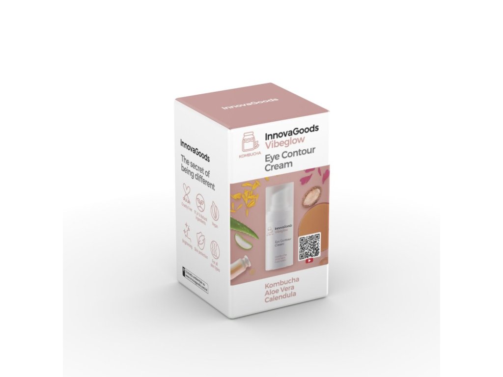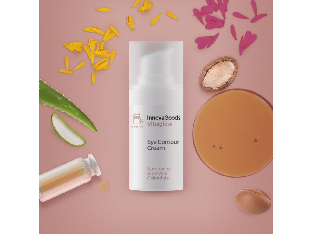 Očný krém Kombucha Vibeglow od InnovaGoods je vegánsky prípravok navrhnutý na každodennú starostlivosť o citlivú pokožku okolo očí. Jeho unikátna receptúra obsahuje 91,4 % prírodných ingrediencií, ktoré spolupracujú na zlepšení vzhľadu a zdravia pokožky.