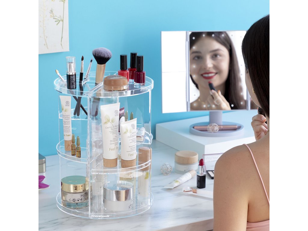 Tento otočný organizér je ideálnym doplnkom pre každého, kto hľadá efektívny spôsob, ako udržať svoje kozmetické produkty prehľadne usporiadané a ľahko dostupné.