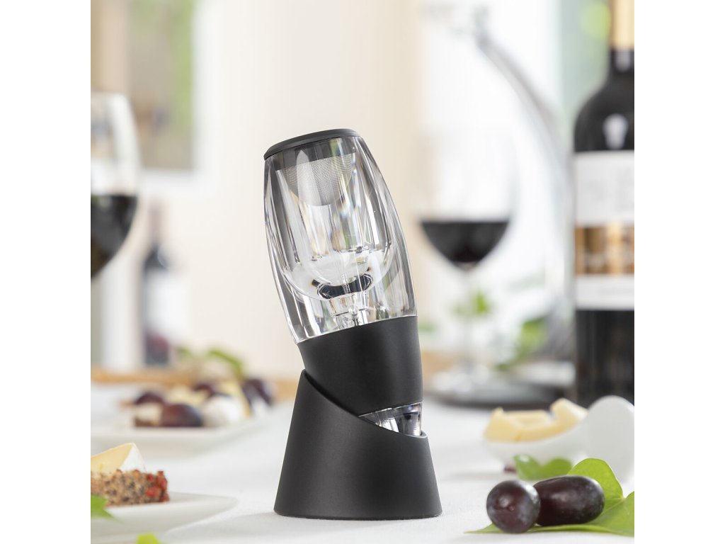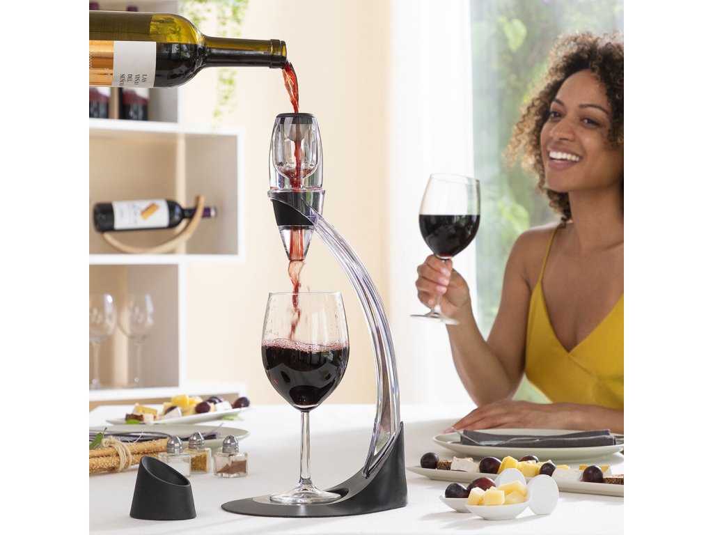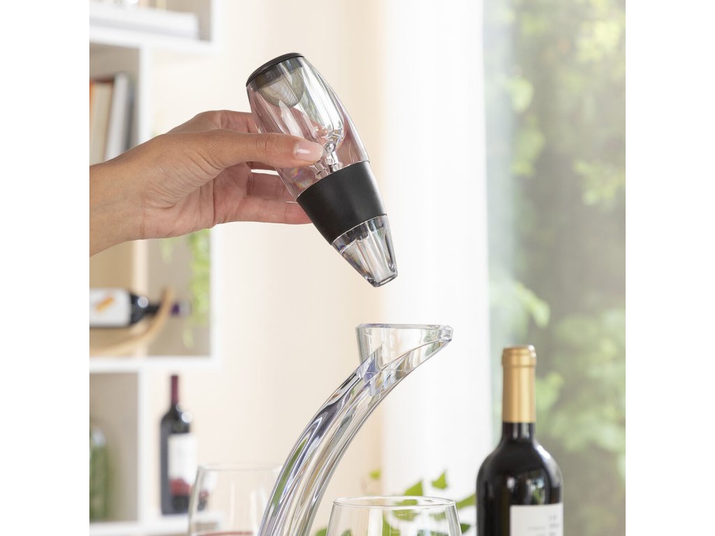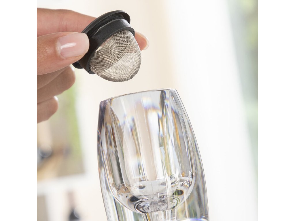 Funkčnosť: Okysličuje a filtruje víno, čím podporuje jeho vôňu a chuť. Súčasťou je filter na zachytenie korkových usadenín alebo nečistôt.