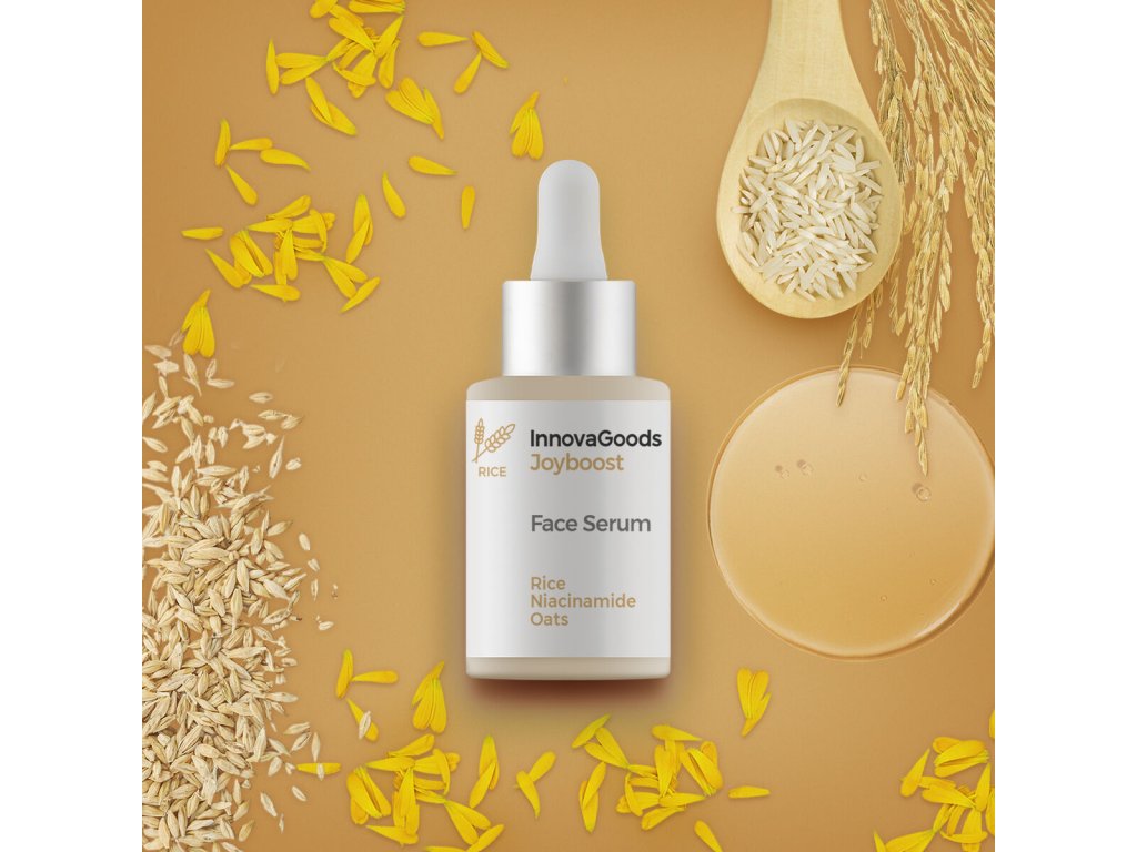 InnovaGoods vám uľahči, aby osobná starostlivosť bola pre vás prioritou bez akýchkoľvek výhovoriek, pretože ponúka najnovšie a najlepšie výrobky pre krásu, relax a pohodu! Dobrým príkladom je Sérum na tvár Rice Joyboost InnovaGoods 30 ml ! Objavte širokú škálu vysoko kvalitných výrobkov, ktoré vynikajú svojou funkčnosťou, efektivitou a inovačným dizajnom.Sérum na pleť Joyboost InnovaGoods Rice revitalizuje a rozjasňuje pokožku, čím zvyšuje jej jednotnosť a pružnosť. Obsahuje prírodné zložky. Aktívne zložky: výťažok z ryže, nechtík, ovos, niacínamid, kyselina hyalurónová a Symcalmin®.