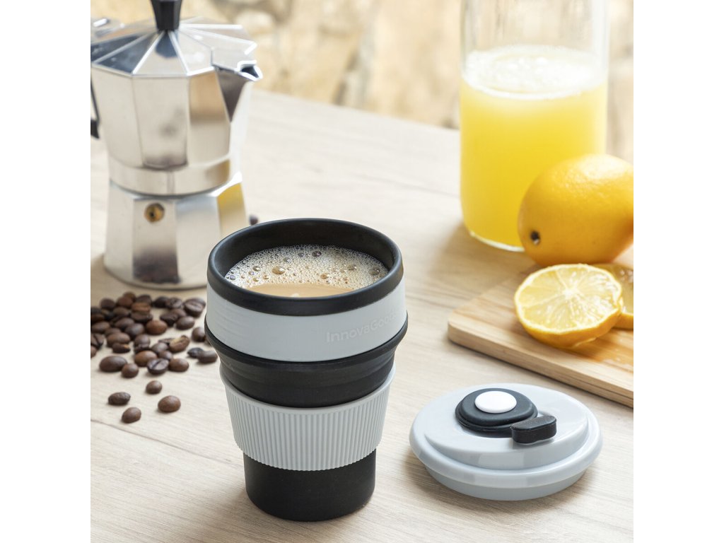 Ak milujete svet gadgetov InnovaGoods vám ponúka tie najlepšie a najoriginálnejšie výrobky pre domácnosť, autá, cestovanie, deti, technológie, zábavu, atď. .! Objavte širokú škálu vysoko kvalitných výrobkov, ktoré vynikajú svojou funkčnosťou, efektivitou a inovačným dizajnom, ako sú Skladací silikónový hrnček Flahsie InnovaGoods Gadget To Go!Veľmi pohodlný a ľahký skladací silikónový hrnček s objemom 350 ml, ktorý sa dá kdekoľvek jednoducho uchopiť a pri uložení zaberie veľmi málo miesta. Originálny, všestranný a prispôsobiteľný vďaka inovatívnemu viacpolohovému dizajnu s nastaviteľnou výškou. Hermetický viečkový uzáver s náustkom a zátkou bráni, aby sa nápoj rozlieval alebo odkvapkával. Chránič proti šmyku a obareniu umožňuje lepší úchop. Hrnček je možné používať na teplé alebo studené nápoje, je vhodný do mikrovlnnej rúry aj do umývačky riadu, ľahko sa čistí. Navyše, keďže je opakovane použiteľný, šetrí peniaze a je výhodné ho používať namiesto jednorazových pohárov a kontaminantov. Obsahuje ilustrovaný návod, aj keď je jeho použitie, skladanie a rozkladanie veľmi jednoduché. Ideálny do kancelárie, pre prácu z domu, cestovanie autom apod.
