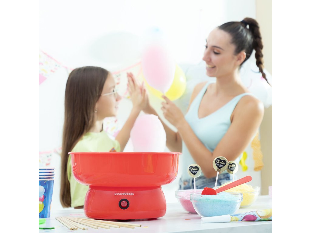 InnovaGoods je tu, aby vám pomohla variť ľahšie a zábavným spôsobom a preto vám ponúka novinky pre vašu kuchyňu, ako sú Stroj na cukrovú vatu Cantty InnovaGoods ! Objavte širokú škálu vysoko kvalitných výrobkov, ktoré vynikajú svojou funkčnosťou, efektivitou a inovačným dizajnom!Výrobníkcukrovej vaty Cantty InnovaGoods je ideálny na to, aby sa deti a dospelí zabavili doma pri rýchlej ajednoduchej výrobe cukrovej vaty. Originálny a zábavný spôsob, ako spoločnestráviť čas zábavným spôsobom a vychutnať si vynikajúcu cukrovú vatu. Ideálnyna oživenie večierkov, narodenín a osláv s rodinou a priateľmi.