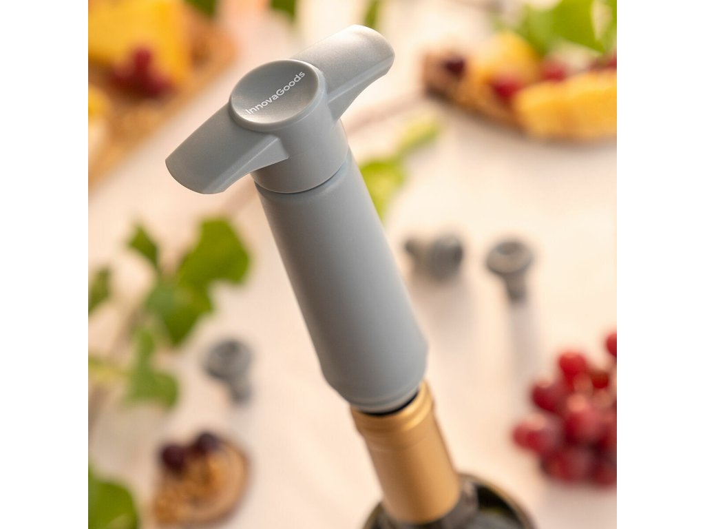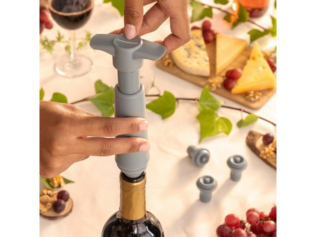 InnovaGoods je tu, aby vám pomohla variť ľahšie a zábavným spôsobom a preto vám ponúka novinky pre vašu kuchyňu, ako sú Vákuová pumpa a zátky na víno Winuum InnovaGoods (4 vrchnáky) ! Objavte širokú škálu vysoko kvalitných výrobkov, ktoré vynikajú svojou funkčnosťou, efektivitou a inovačným dizajnom!Táto ručná vákuová pumpa na víno so 4 zátkami vám umožní uchovať vlastnosti zvyškov fliaš vína až 7 dní. Odsáva vzduch z vnútra fľaše, aby víno neoxidovalo. Nevhodná pre šumivé vína.