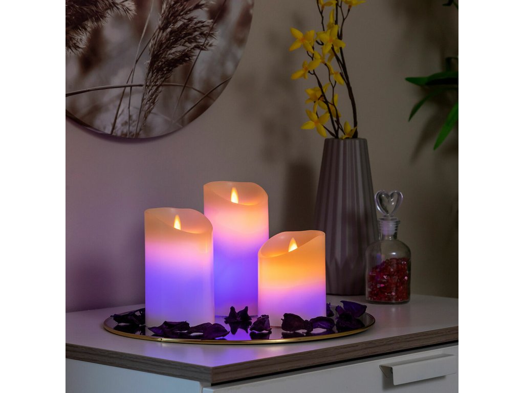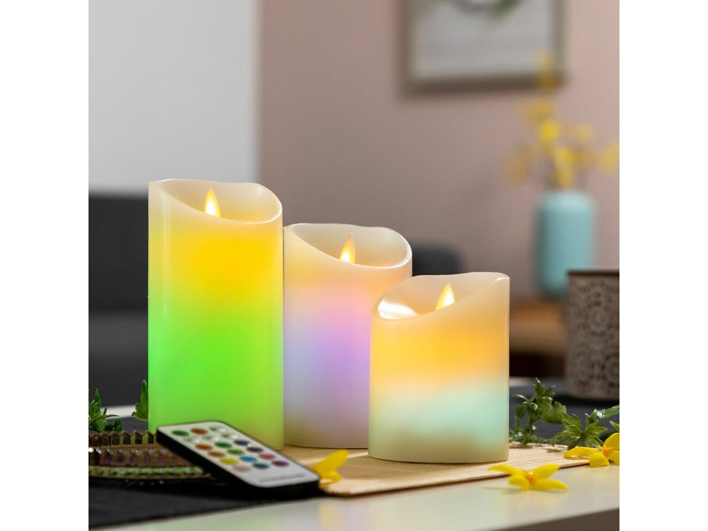 Viacfarebné sviečky s efektom plameňa LED s diaľkovým ovládaním Lendles 3 kusov